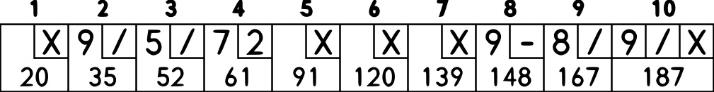 De puntentelling bij bowling gaat tegenwoordig bijna overal automatisch, maar werkt als volgt: